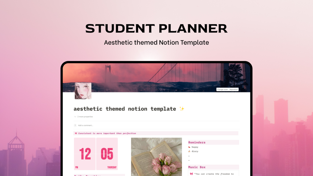Aesthetic themed Notion template is designed to help you achieve optimal productivity by integrating essential tools and structures into your workflow.